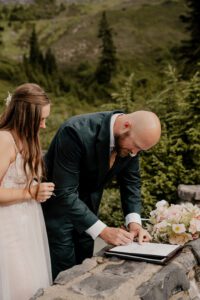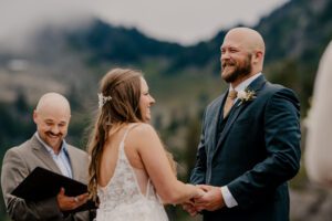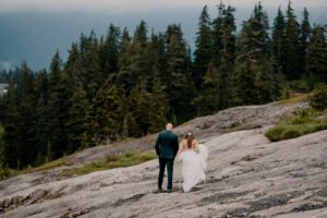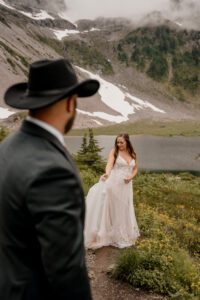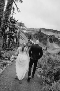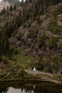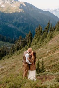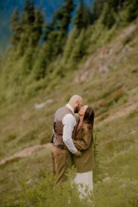 If you’re dreaming about eloping in the mountains, I could not recommend the Mt Baker Snoqualmie National Forest enough! With so many different landscapes, hiking options, and easy access to beautiful views, it’s a great option. Even better, no permit is required for ceremonies of under 75 people, meaning there is no added cost to get married here, other than a park pass for parking! That said, it is a very popular location, so I highly recommend choosing a weekday and prioritizing either sunrise, or sunset, for the majority of your photos to avoid crowds. These times of day will provide the best lighting for those dreamy, golden images, as well. The best time of year to elope at Mt. Baker is July through October. Due to weather, the road up to Artist Point typically is only open July through the first big snowfall, which is generally late October.