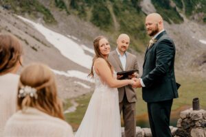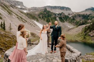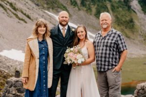 Following getting ready and a brief, but very emotional first look in the backyard, we journeyed up the highway to Bagley Lakes/Heather Meadows for the ceremony. Both Cori and Naomi had their immediate families attending, with Naomi’s brother officiating the ceremony. Such a beautiful, intimate ceremony. And we even got some sunshine peeking through the clouds!
