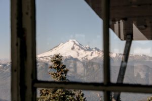 Day two of our adventure began with a 4am wake up call, but wow, was it worth it! Since we didn’t end up doing Winchester Fire Lookout for sunset the night before, as was originally planned, we decided to attempt it for sunrise and pray that there would be clear skies. The road getting to the trailhead is not for the faint of heart. Cori thankfully had a high clearance truck that flew over all the pot holes and washouts on the dirt road, no problem. We got our first glimpse of Mt. Baker on our drive up, only to reach the trailhead and have the thick fog roll in once again.